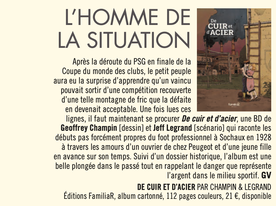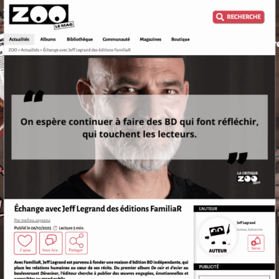 On parle de nous Trier par type : TousDe Cuir et d'AcierDéracinéFamiliar Éditions DÉRACINÉ → INSTAGRAM Publié le 11/10/2025 Lire l’article ZOO LE MAG Publié le 06/10/2025 Lire l’article DÉRACINÉ → INSTAGRAM Publié le 19/09/2025 Lire l’article DE CUIR ET D’ACIER → EN JEU, UNE AUTRE IDÉE DU SPORT Publié le 17/09/2025 Lire l’article DÉRACINÉ → COMIXTRIP Publié le 12/09/2025 Lire l’article DÉRACINÉ → ÉCRIRE LE SPORT Publié le 11/09/2025 Lire l’article DE CUIR ET D’ACIER → dBd Mag Publié le 09/09/2025 Lire l’article DÉRACINÉ → INSTAGRAM Publié le 02/09/2025 Lire l’article DÉRACINÉ → LE FRANÇAIS DANS LE MONDE Publié le 01/09/2025 Lire l’article DÉRACINÉ → PLANETE BD Publié le 28/08/2025 Lire l’article DÉRACINÉ → INSTAGRAM Publié le 28/08/2025 Lire l’article DÉRACINÉ → INSTAGRAM Publié le 23/08/2025 Lire l’article DÉRACINÉ → ACTUA BD Publié le 04/08/2025 Lire l’article DE CUIR ET D’ACIER → Le Trois Publié le 02/08/2025 Lire l’article DE CUIR ET D’ACIER → INSTAGRAM Publié le 23/07/2025 Lire l’article DE CUIR ET D’ACIER → PLANETE BD Publié le 17/07/2025 Lire l’article DE CUIR ET D’ACIER → INSTAGRAM Publié le 08/07/2025 Lire l’article DE CUIR ET D’ACIER → SPORT & PLEIN AIR Publié le 04/07/2025 Lire l’article DE CUIR ET D’ACIER → INSTAGRAM Publié le 02/07/2025 Lire l’article DE CUIR ET D’ACIER → INSTAGRAM Publié le 27/06/2025 Lire l’article DE CUIR ET D’ACIER → Le Parisien Publié le 27/06/2025 Lire l’article DE CUIR ET D’ACIER → ACTUA BD Publié le 26/06/2025 Lire l’article DE CUIR ET D’ACIER → RADIO TOU'CAEN Publié le 23/06/2025 Lire l’article Load More